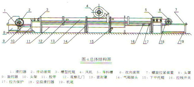 6、風(fēng)源匹配的創(chuàng)新————第一代氣墊帶式輸送機(jī)通常選用9--19,4--72,9--26,4--68等普通風(fēng)機(jī),這些風(fēng)機(jī)往往不能與氣墊帶式輸送機(jī)的特性相匹配,導(dǎo)致氣墊穩(wěn)定性差。我公司與西安交大風(fēng)機(jī)研究所研制成功了與氣墊帶式輸送機(jī)特性相匹配的新型風(fēng)機(jī),不僅科學(xué)的解決了風(fēng)量和風(fēng)壓的匹配關(guān)系,而且提高了氣墊的均勻穩(wěn)定性,提高了空氣利率15%。